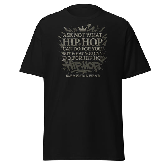 Luxury T-shirt | Elemental Wear – "Ask Not What Hip Hop Can Do For You" Quote